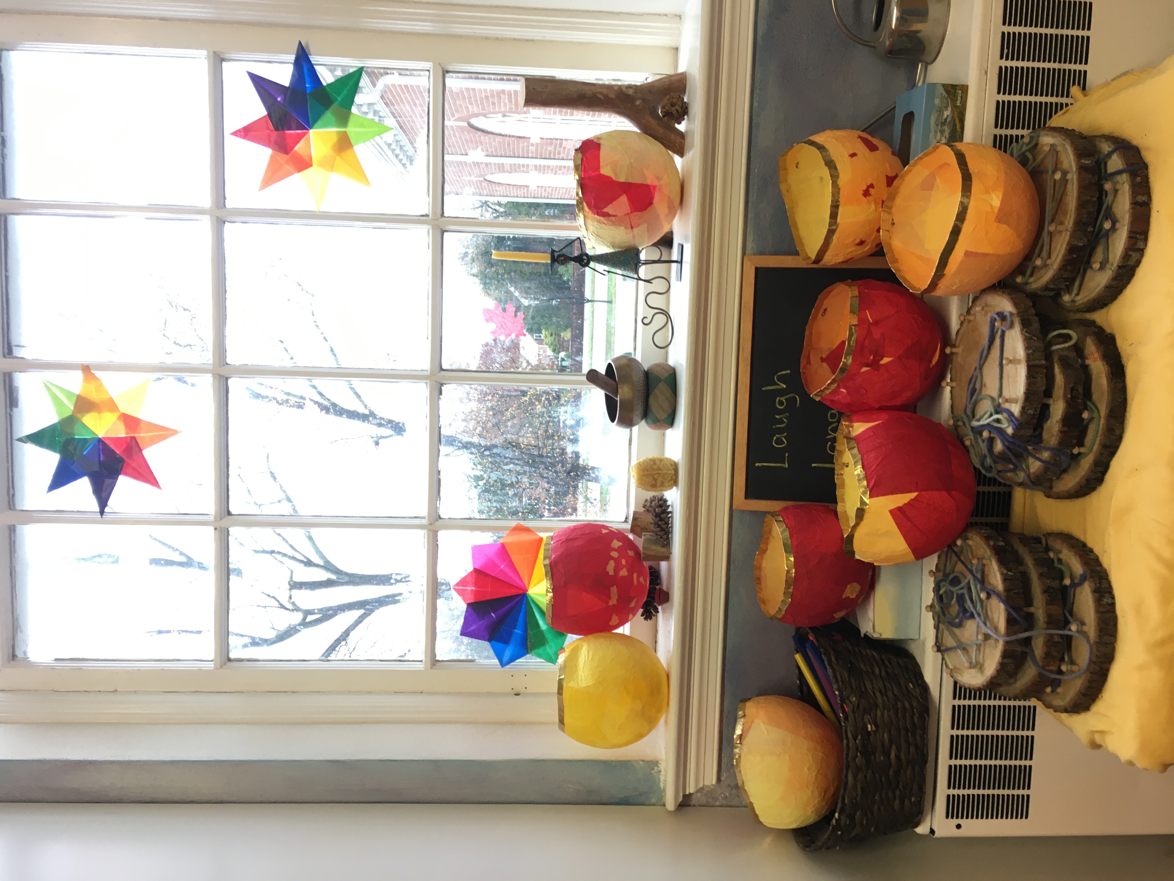 Classrooms are filled with natural materials such as wooden toys and furnishings, woven baskets, and woolen animals and dolls. Children go outdoors every day in every season (excluding unsafe weather). There, they are free to climb and dig in the dirt, and to create with us, building structures or tending our garden.